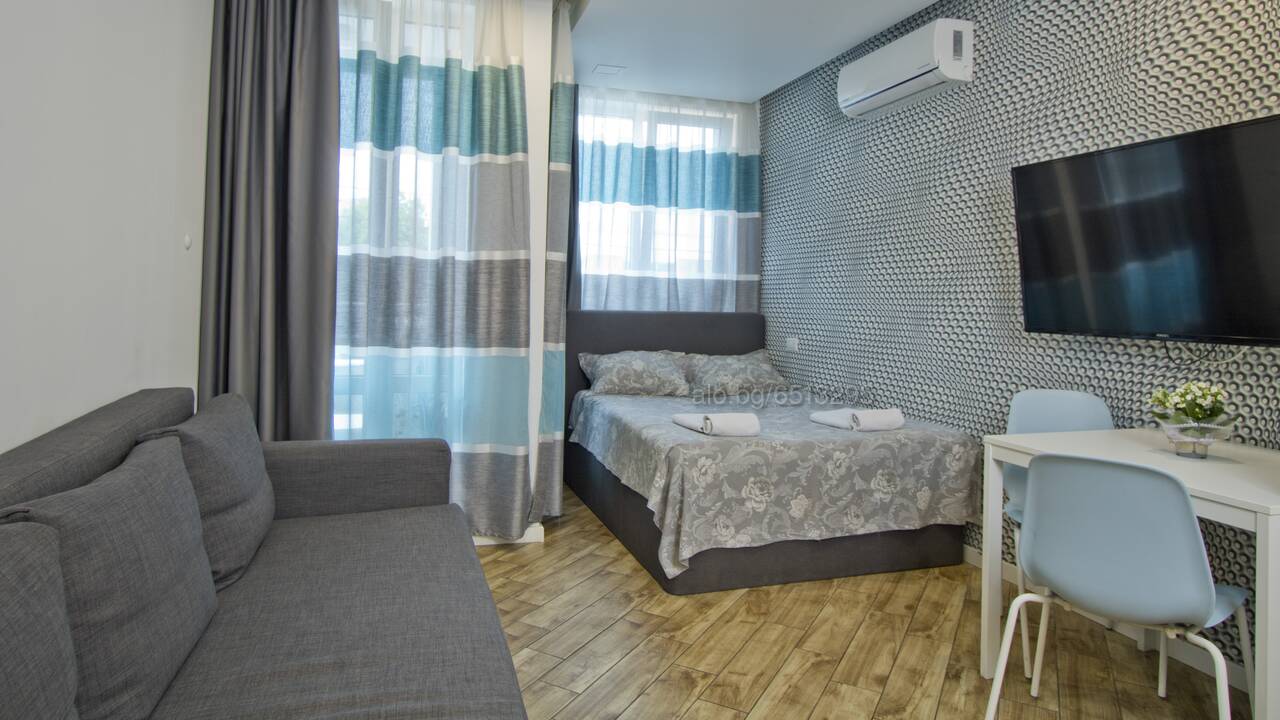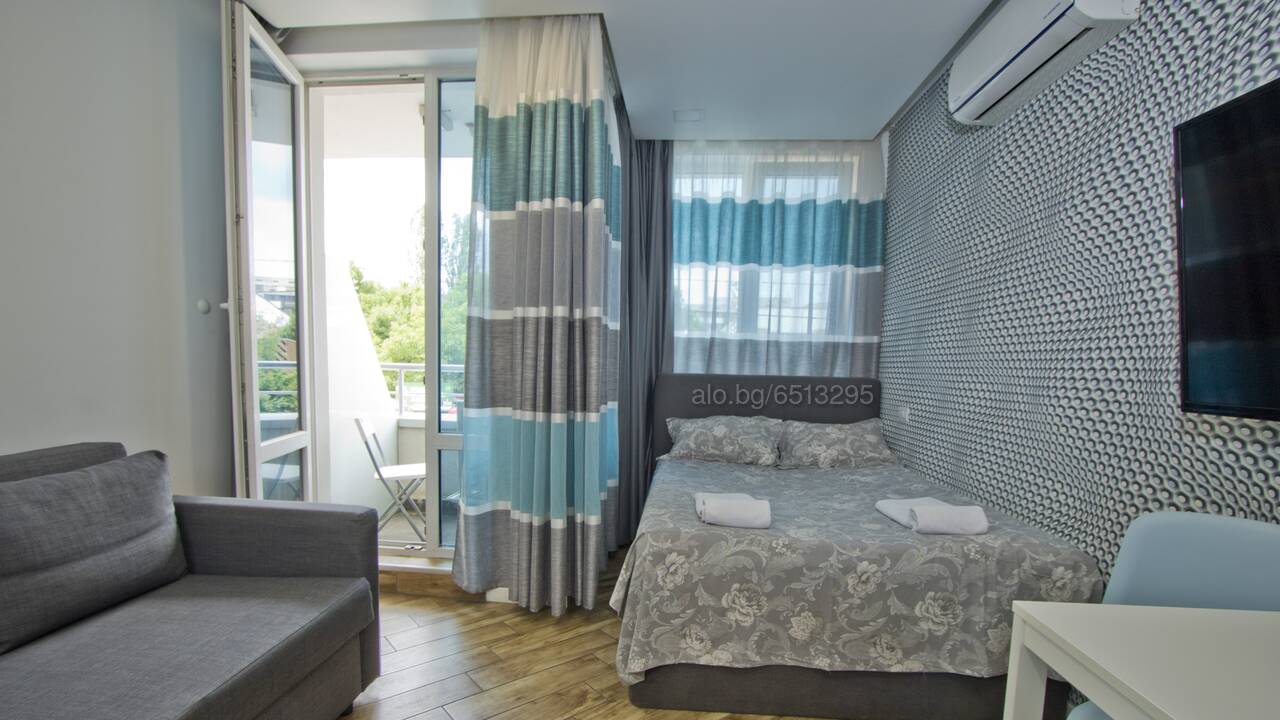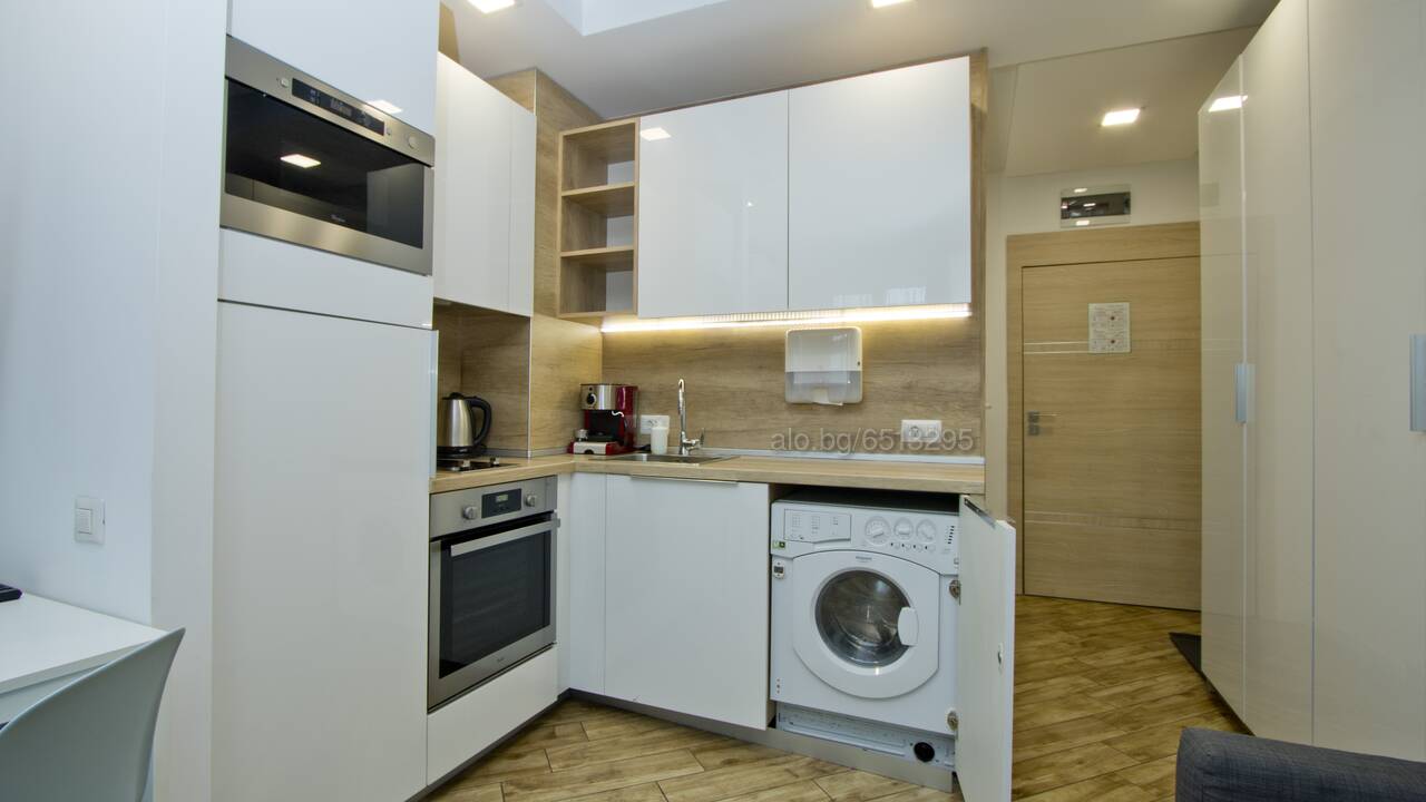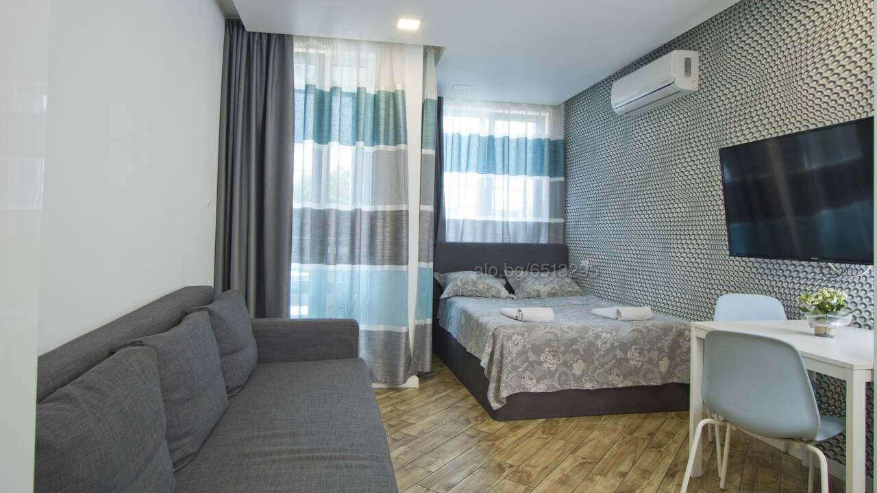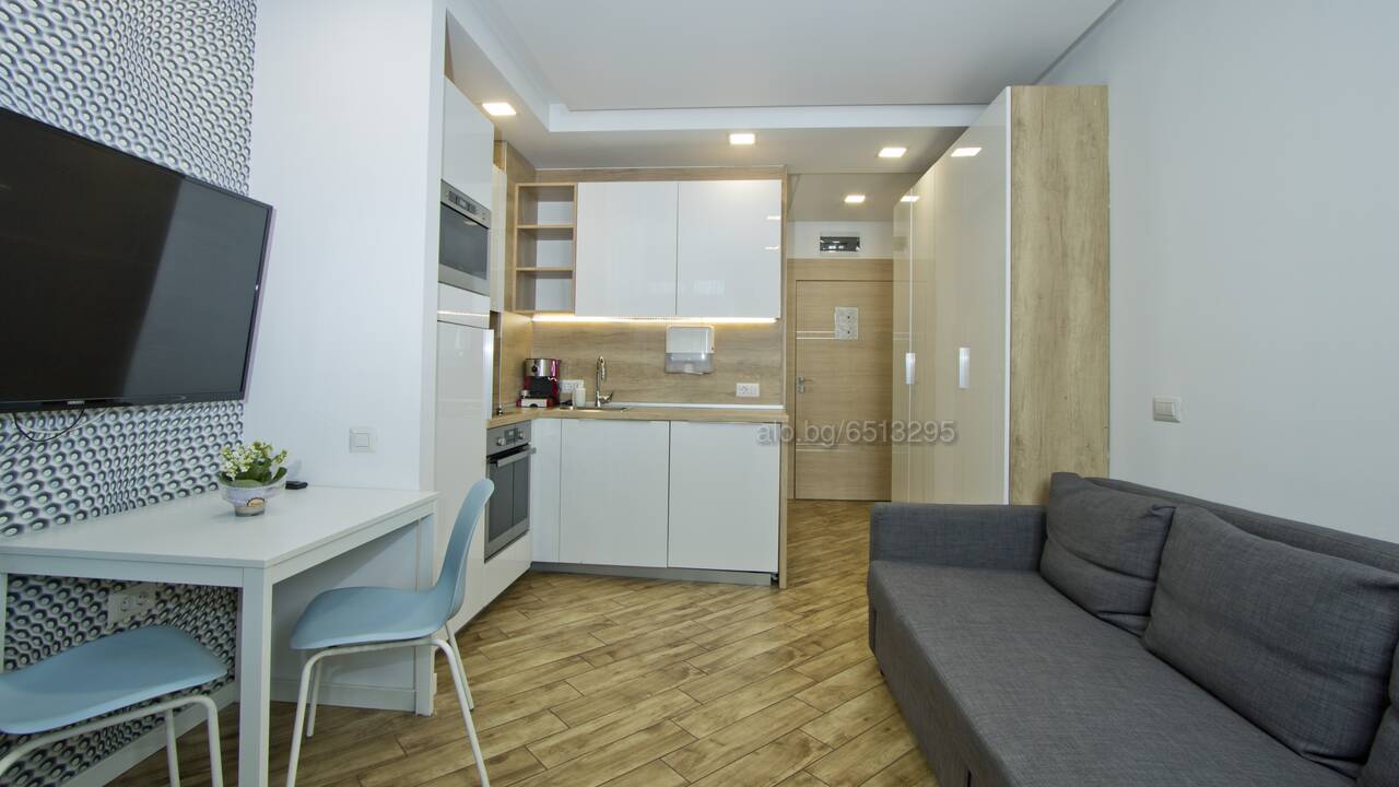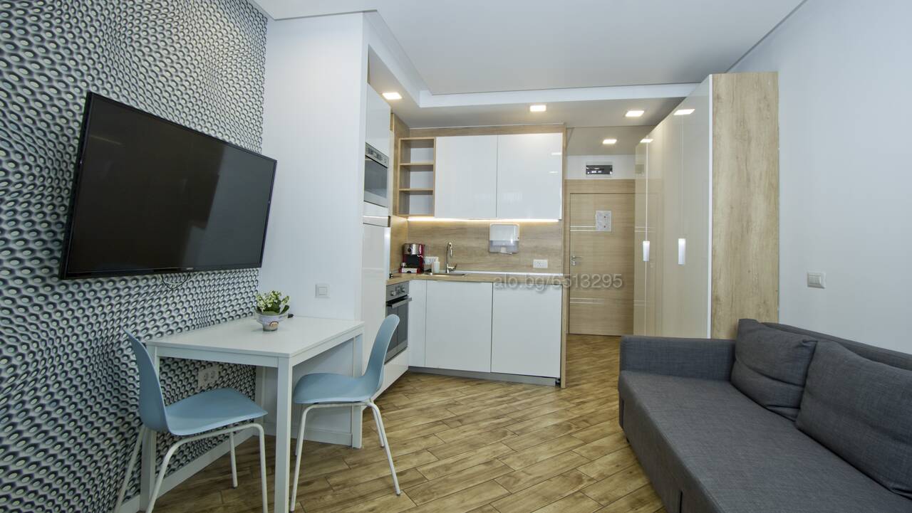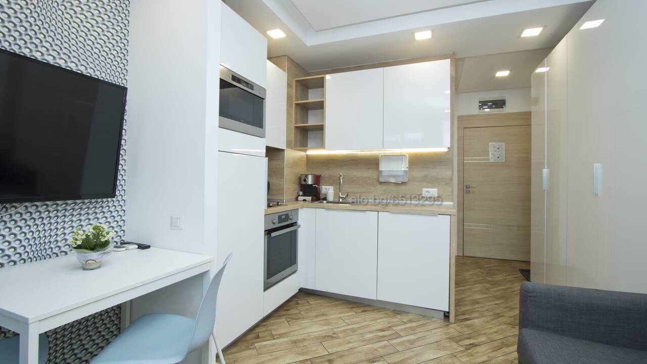 Апартамент разполага със спалня, кухня - обособена със микровълнова печка, готварска фурна с котлони, пералня, хладилник, кухненски прибори и принадлежности. Климатик. Апартаментите разполагат с 43 инчов смарт телевизор и бърз интернет.