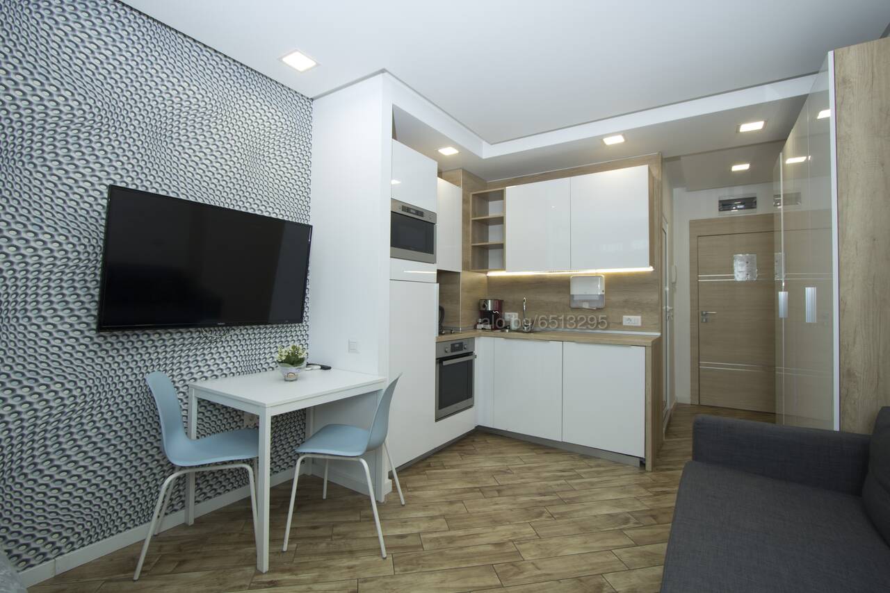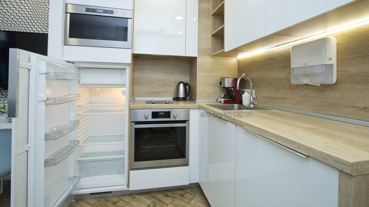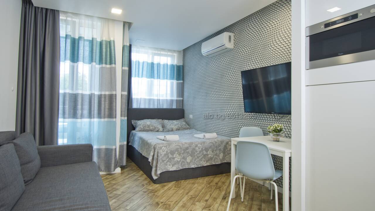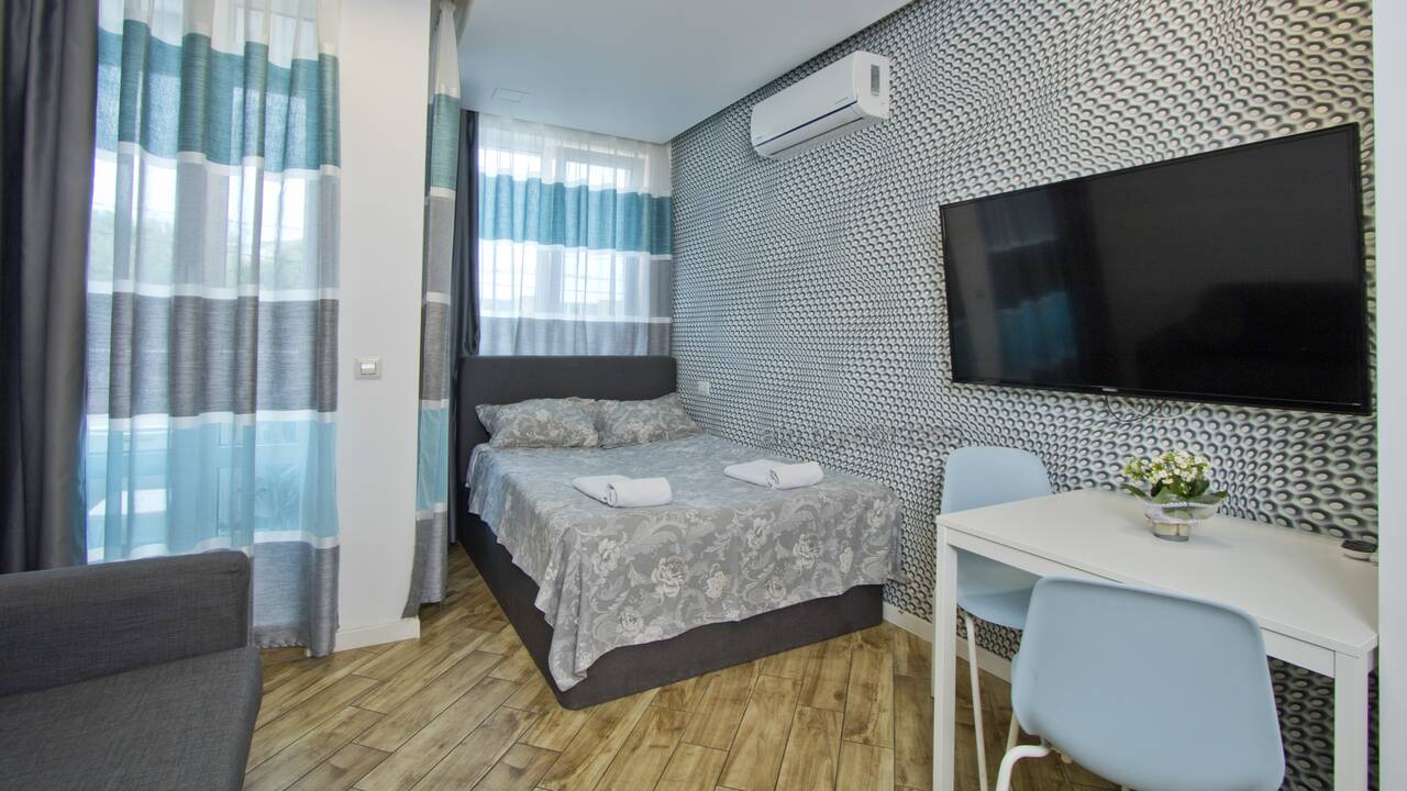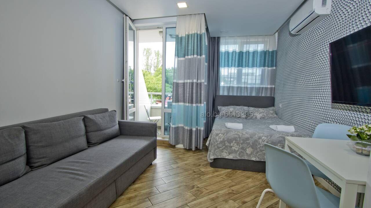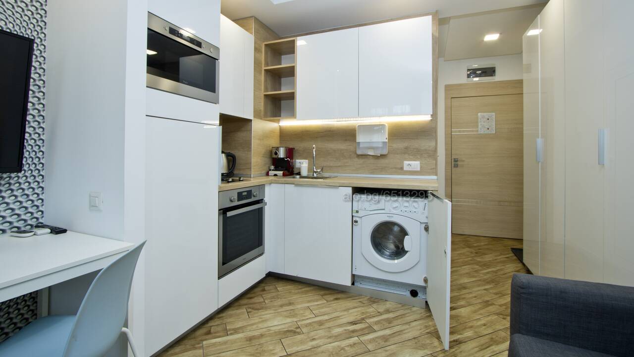 Апартамент разполага със спалня, кухня - обособена със микровълнова печка, готварска фурна с котлони, пералня, хладилник, кухненски прибори и принадлежности. Климатик. Апартаментите разполагат с 43 инчов смарт телевизор и бърз интернет.