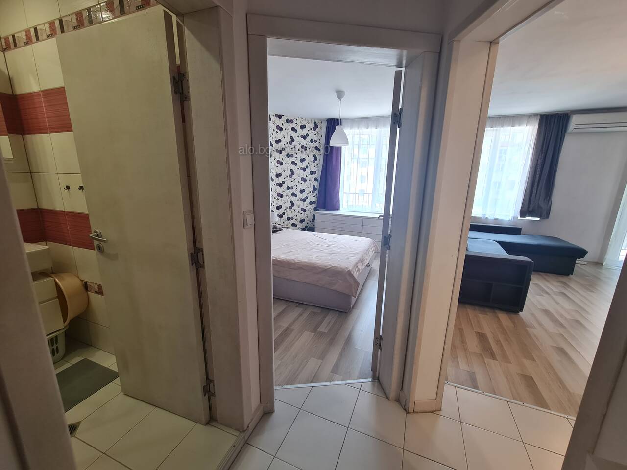 Апартаментът се състои от светла дневна с разтегателен диван за 2-ма, кухненски бокс и балкон, комфортна спалня, баня с тоалетна и входно антре. Подходящ е за двойки, студенти, командировани гости или пътуващи професионалисти.