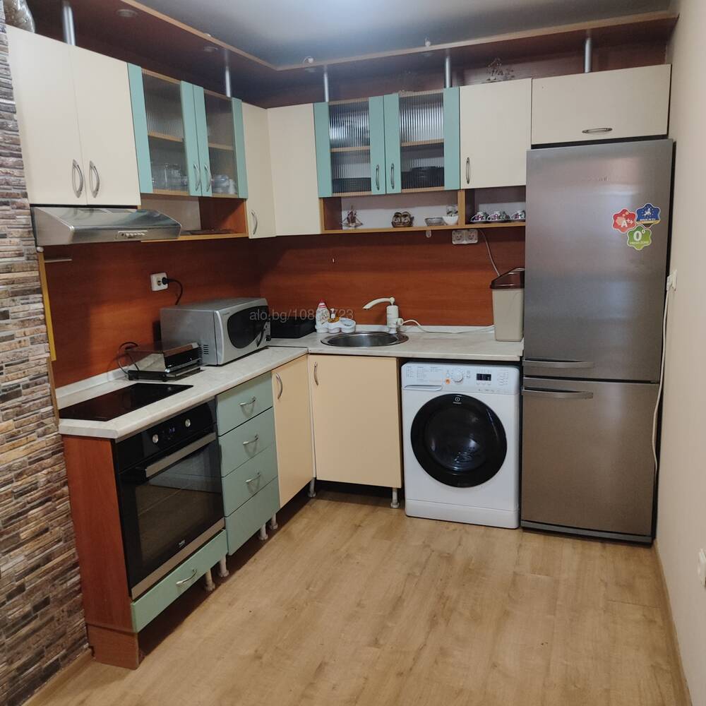 - оборудвана кухня - хладилник, фурна, керамичен плот с котлони, аспиратор, микровълнова; скара